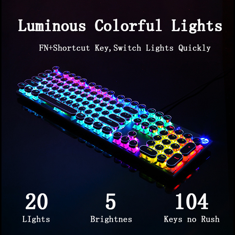 HP Punk E-sports Mechanical Keyboard Game Special Metal Panel Square Round Notebook Desktop Compute Office Wired Peripheral