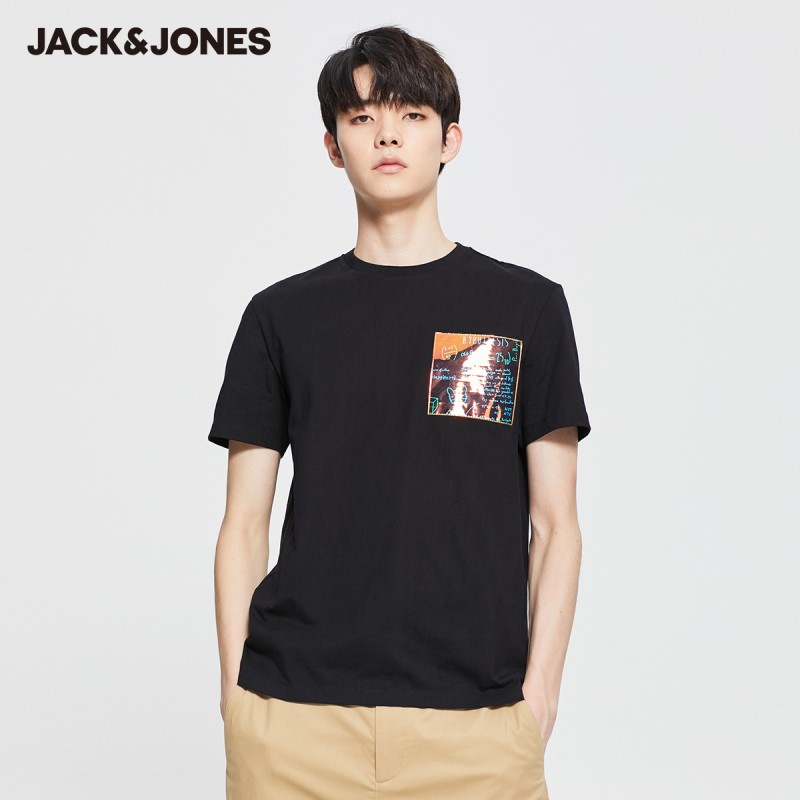 JackJones New Arrival Men’s 100% Cotton Laser Letter Printed Short-sleeved T-shirt|220201537