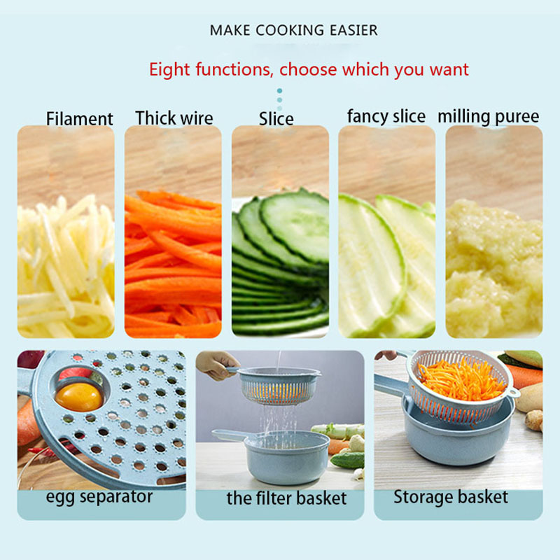 Multi-function Graters Round Mandoline Slicer Food Slicer Shredded Kitchen Tool Adjustable Household Kitchenware with Container