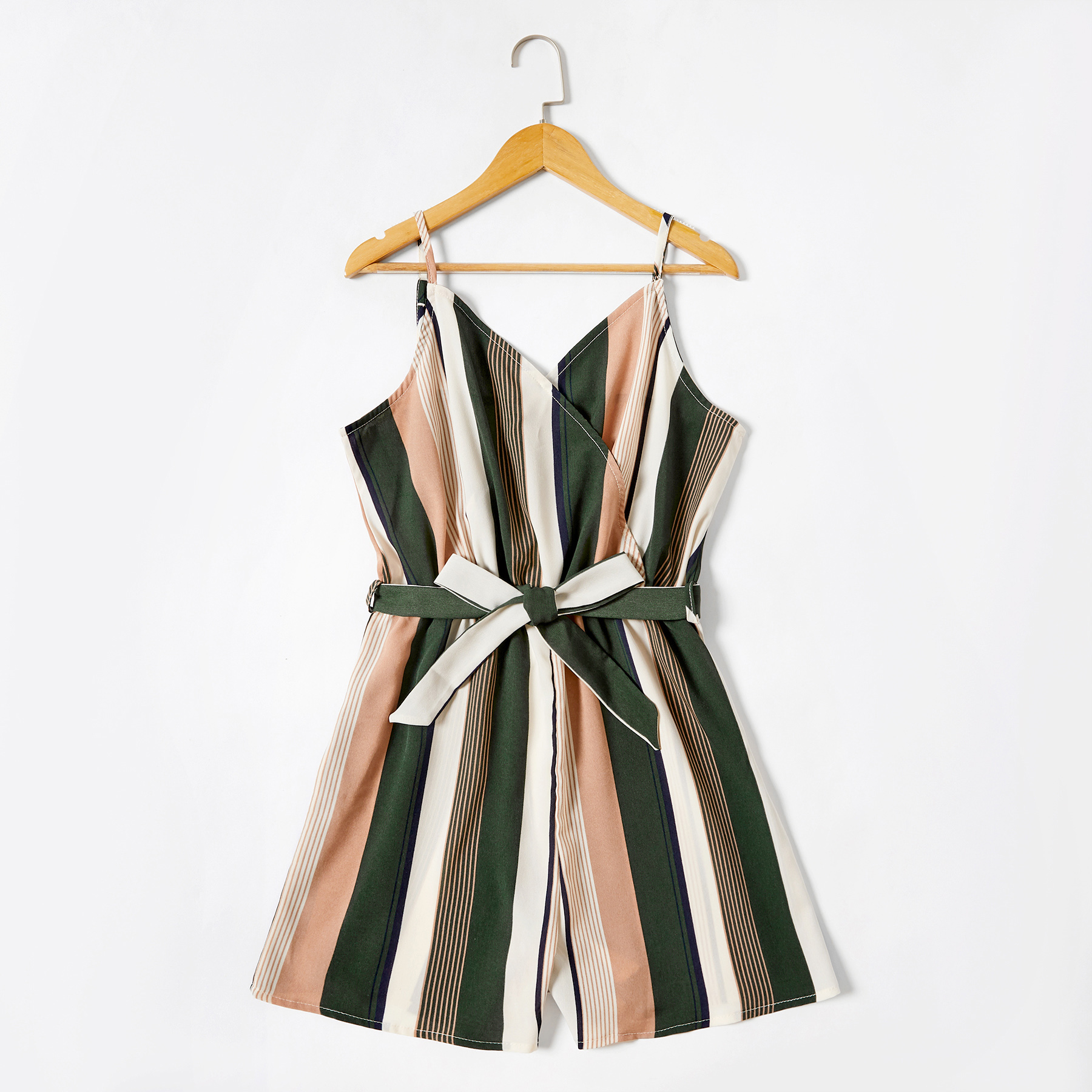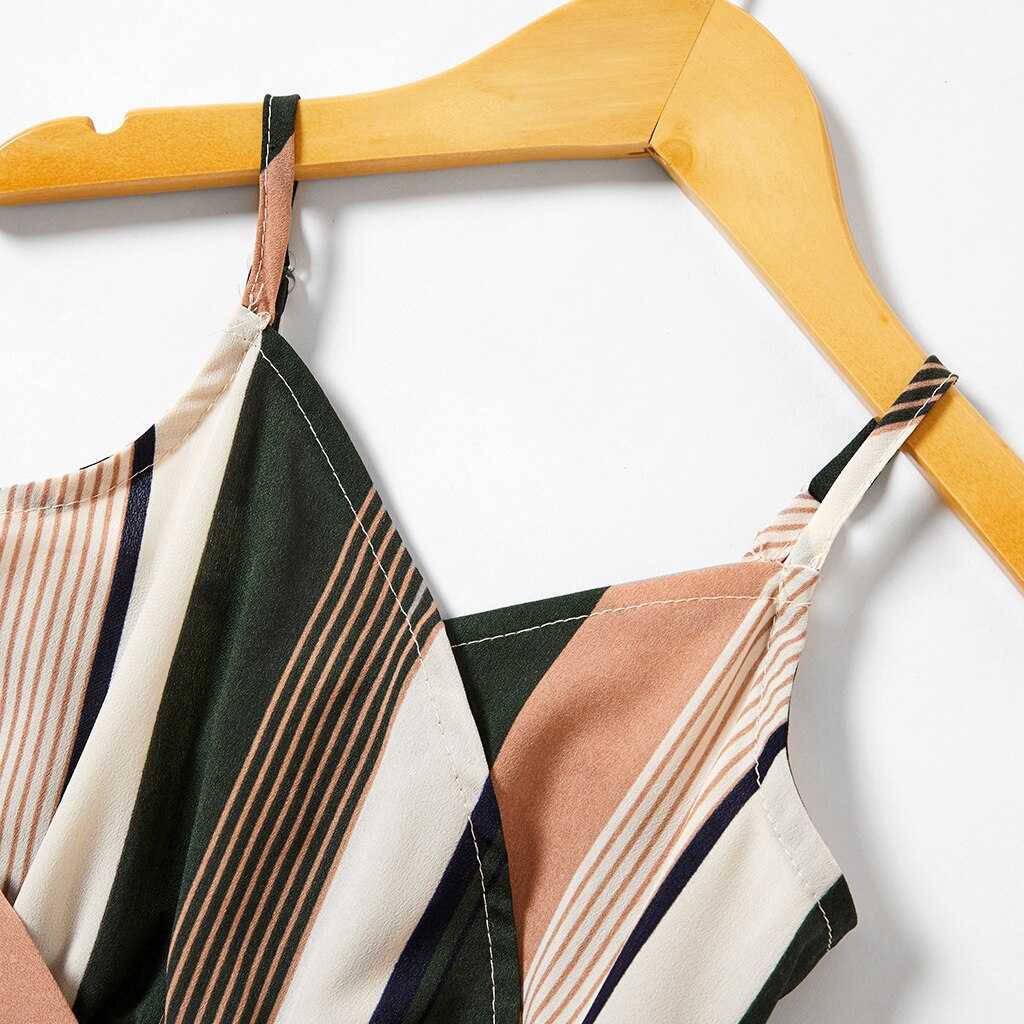 PatPat Colorful Vertical Stripe Matching Sling Shorts Rompers