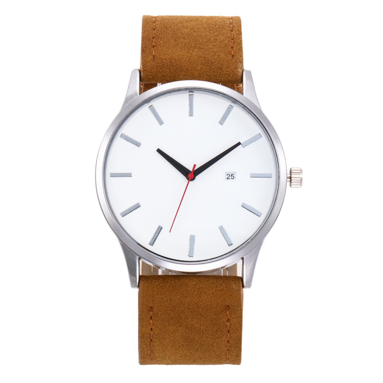 SHSHD Fashionable casual men’s calendar belt quartz watch military watches men table calendar watc Big dialh students watch